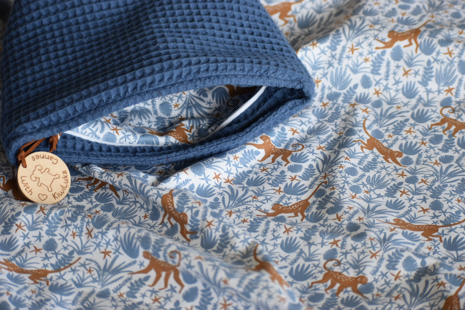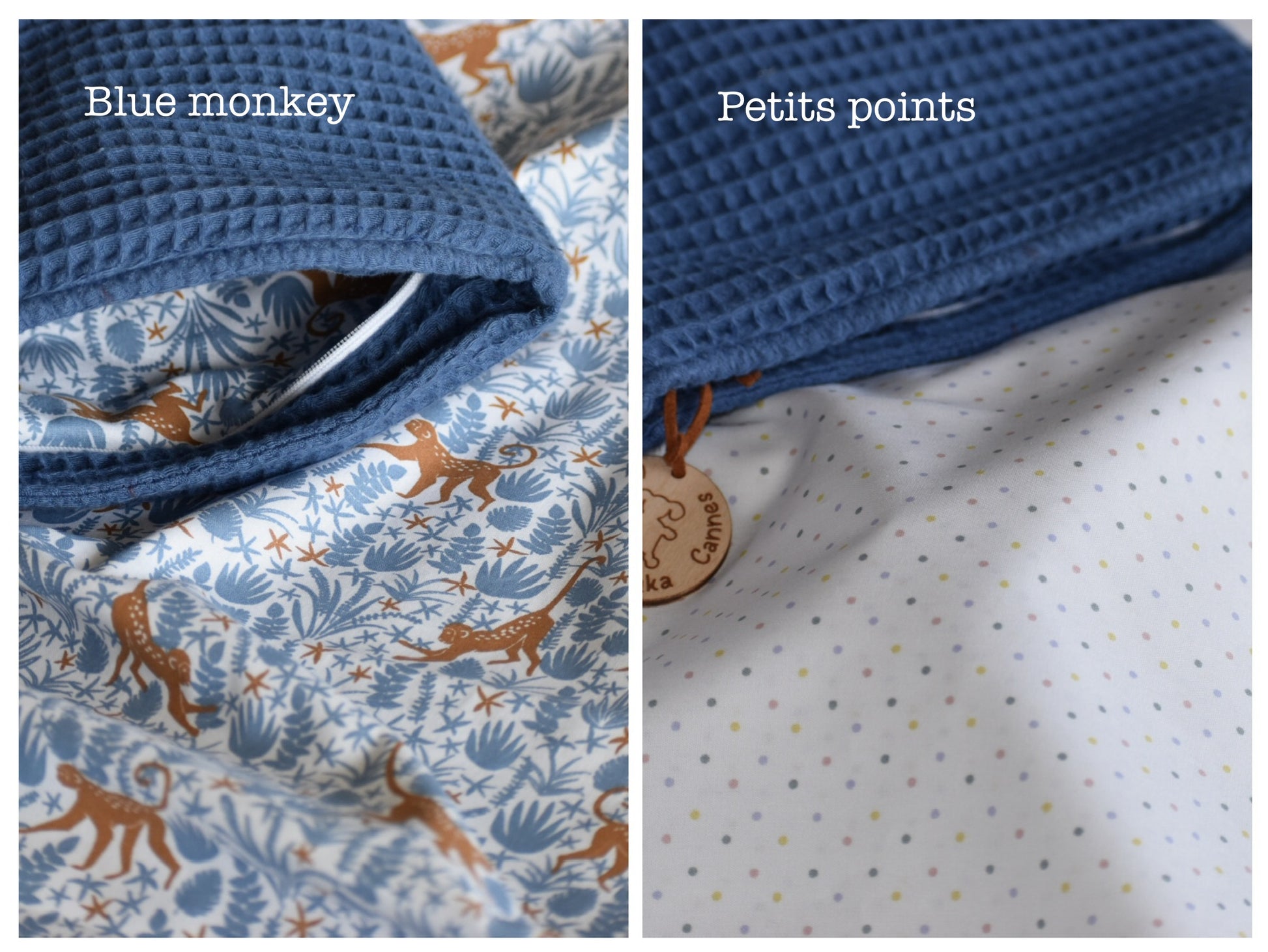 N’oubliez pas de sélectionner votre tissu imprimé préféré dans les options en haut de page. Petits points ou blue monkey ?