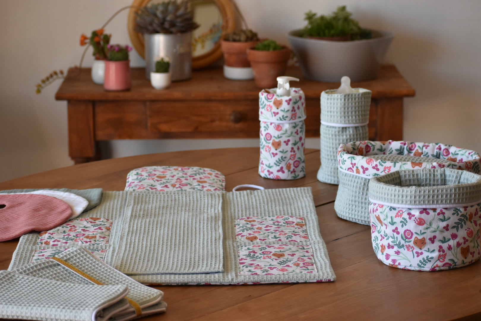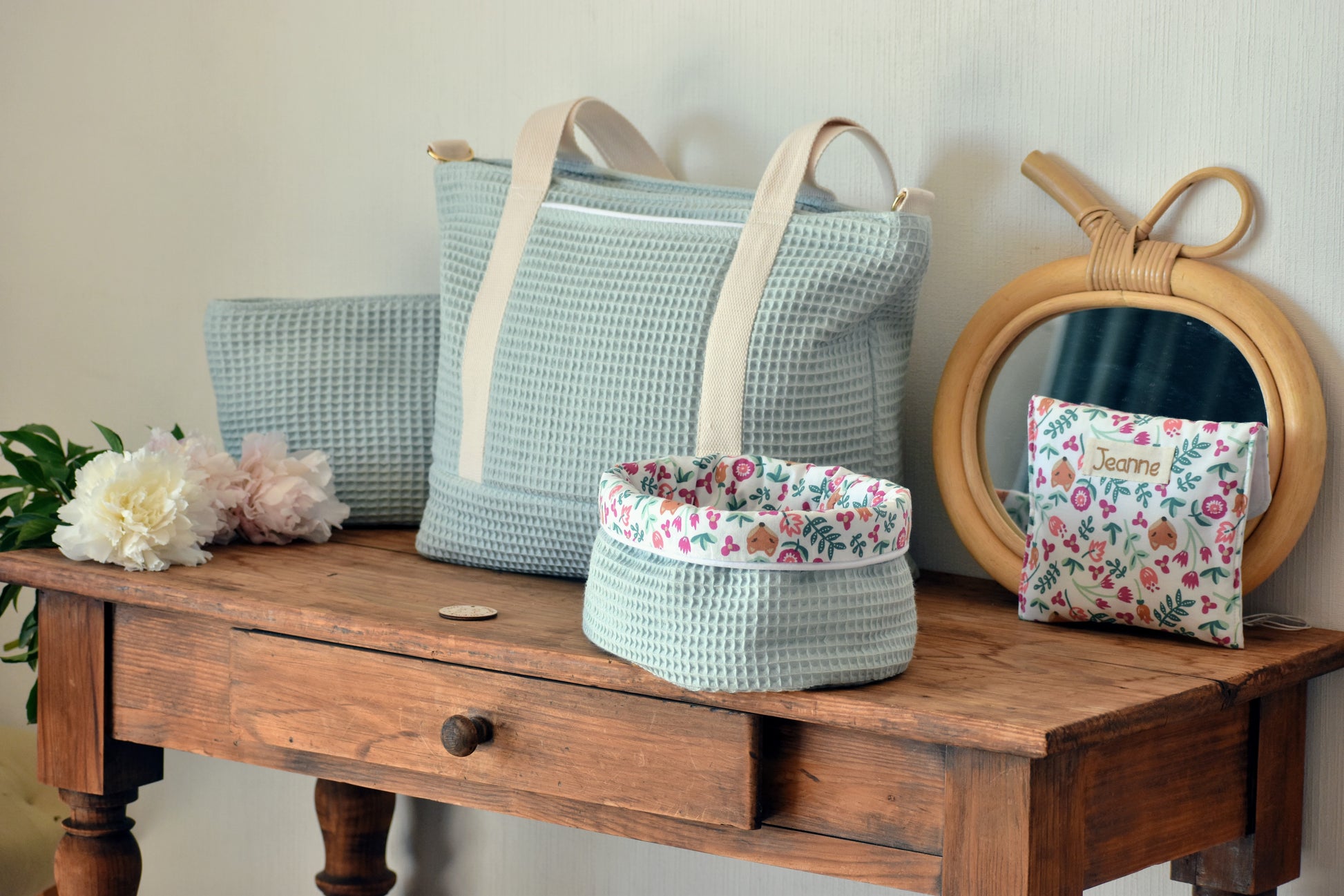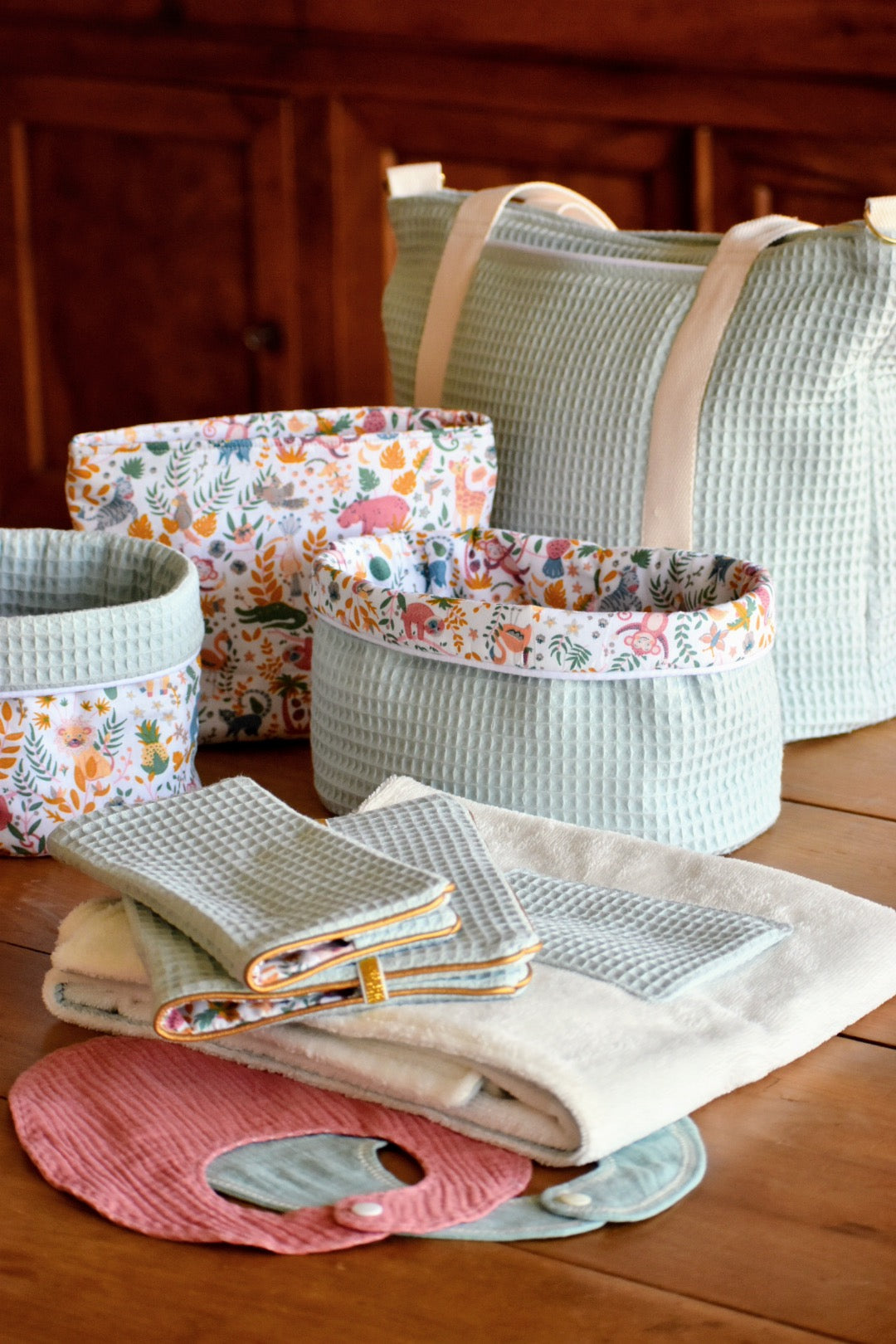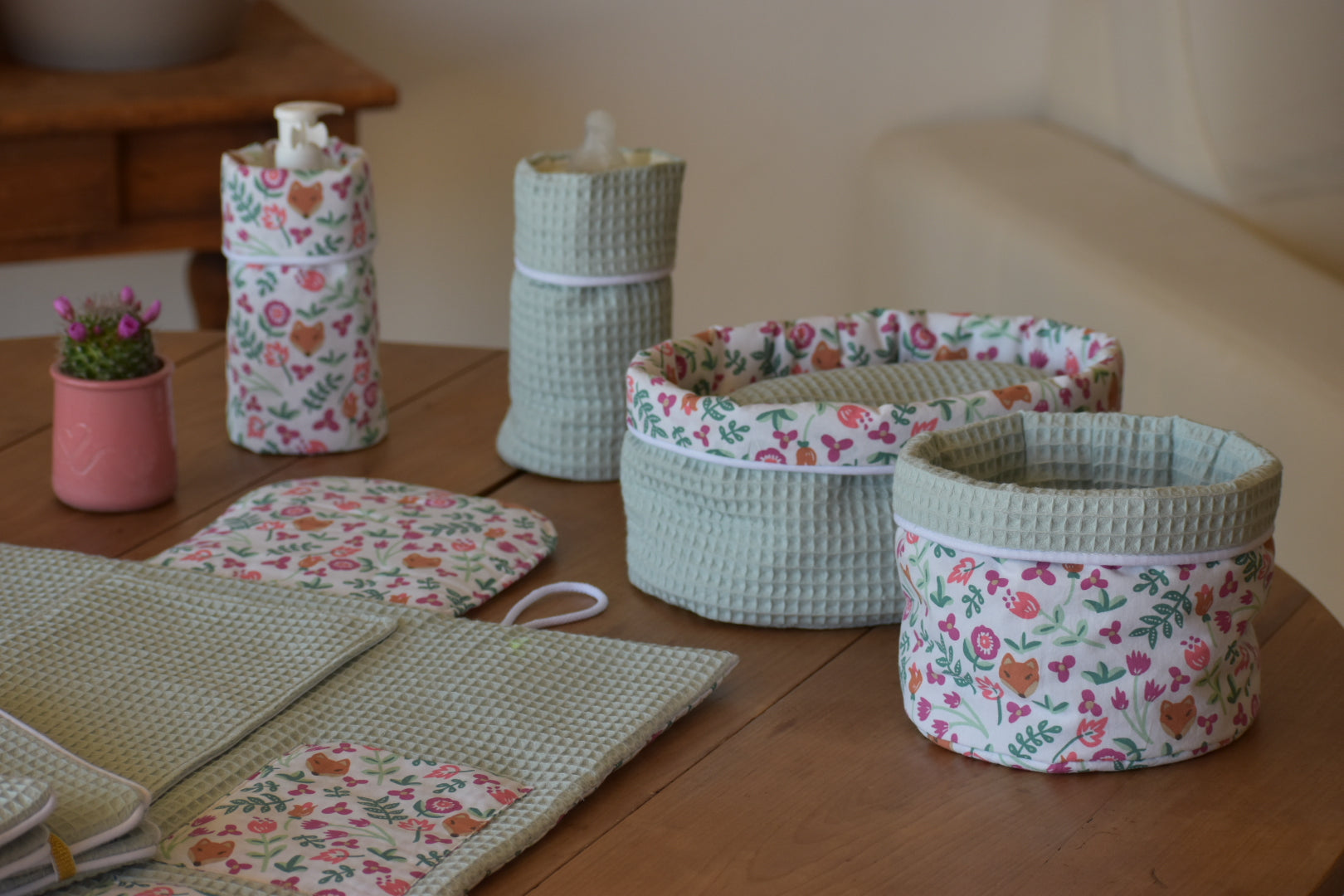 Joignez l'utile à l'agréable avec les jolies panières réversibles pour la table à langer.