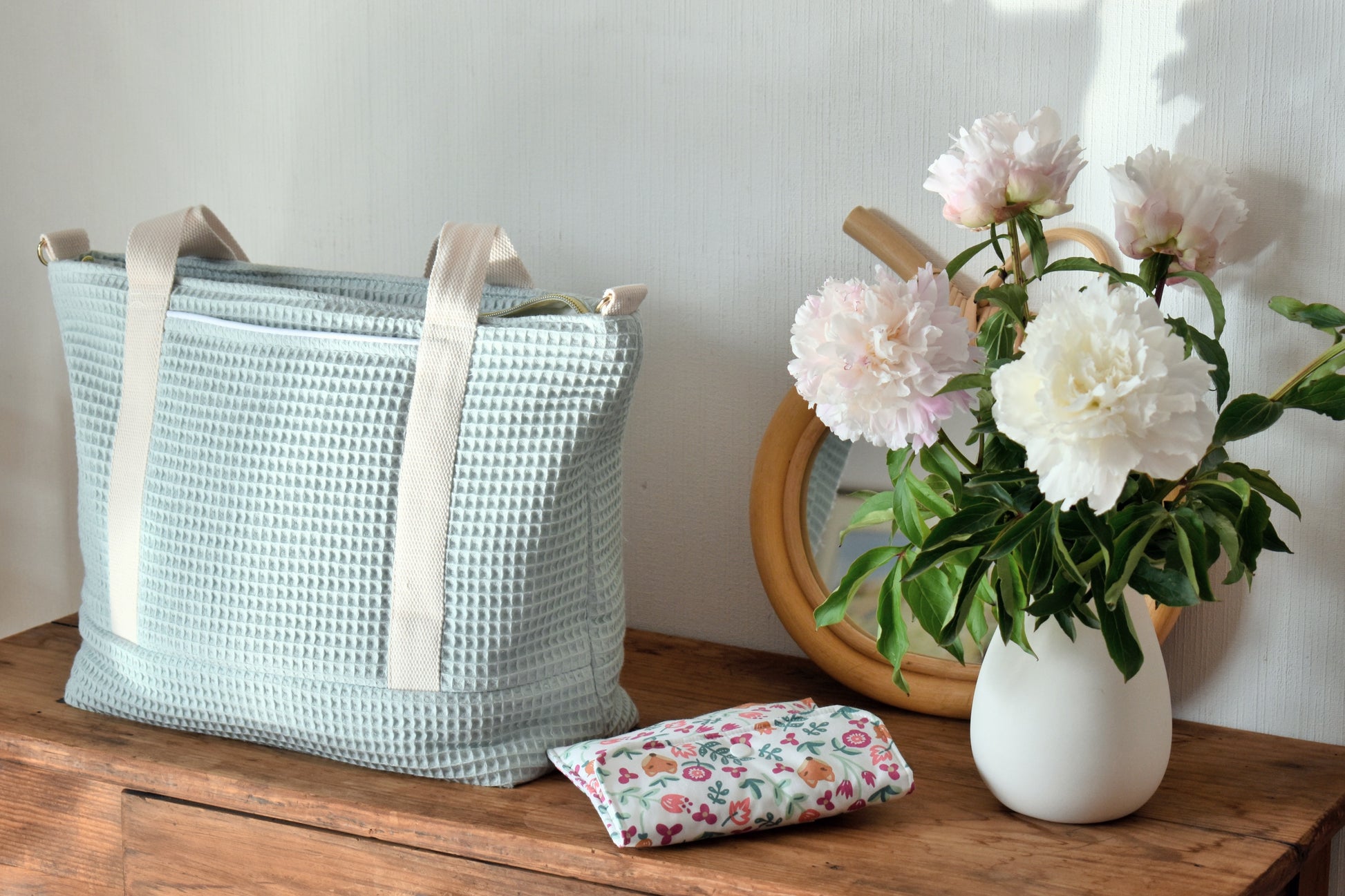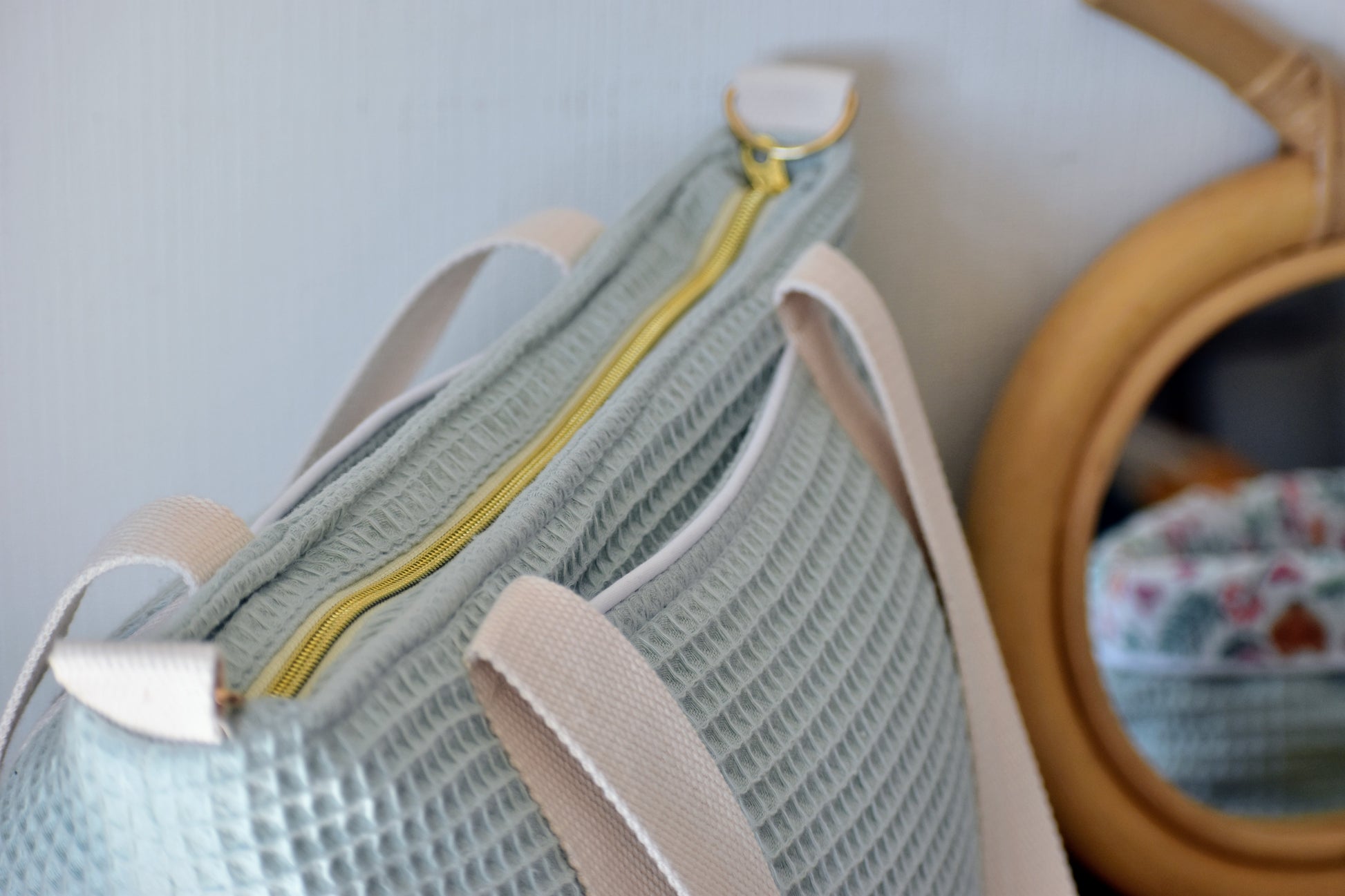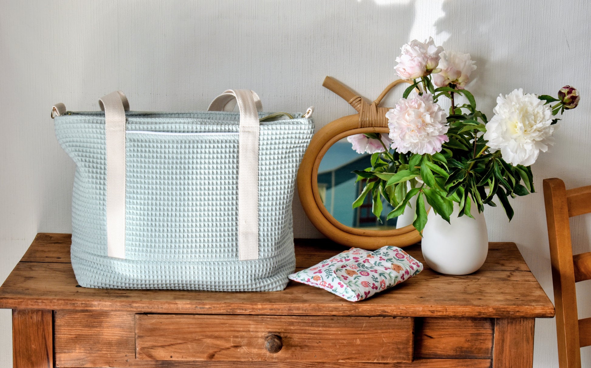 Joli, pratique et spacieux, mon nouveau sac à main qui contient toutes les petites affaires de bébé et une poche zippée séparée rien que pour moi. Il me suivra partout.