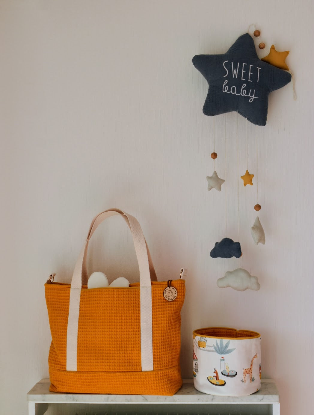 Joli, pratique et spacieux, mon nouveau sac à main contient toutes les petites affaires de bébé et une poche zippée séparée rien que pour moi. Il me suivra partout.