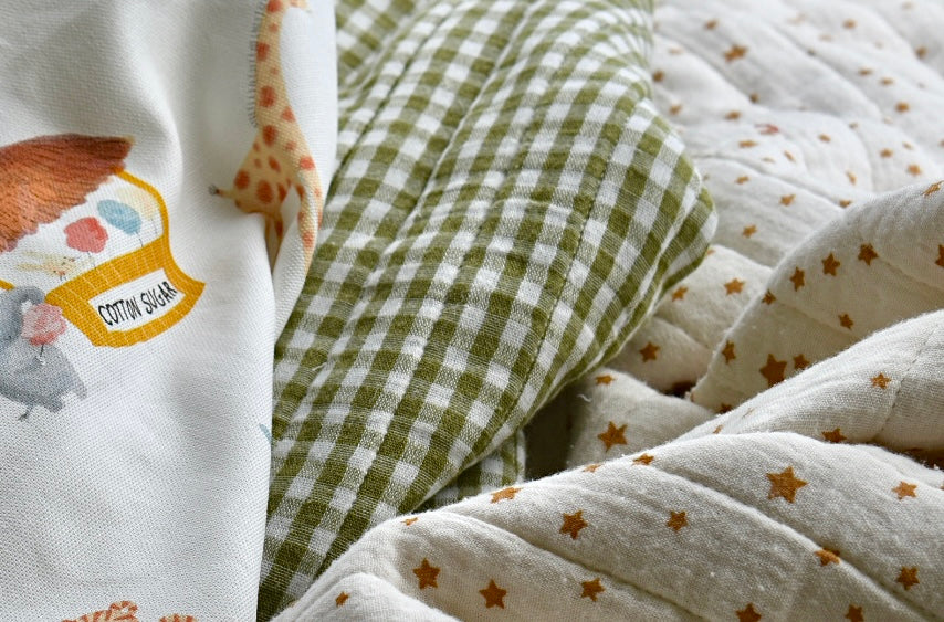 - Extérieur et intérieur : double gaze 100% coton Oeko Tex